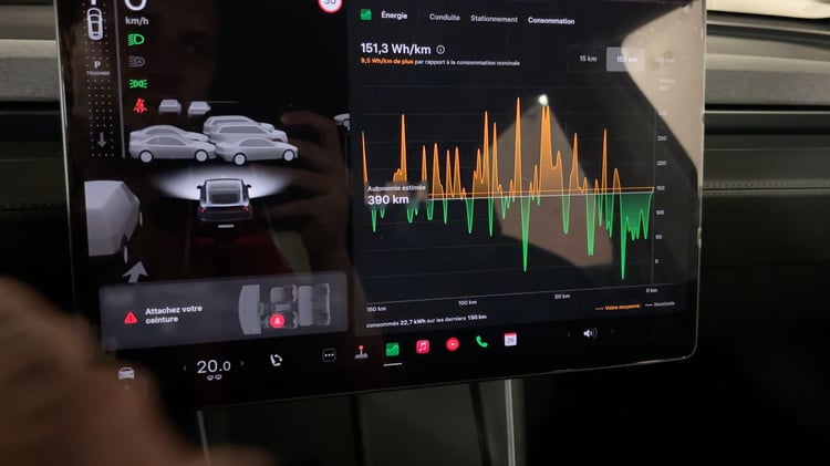 Fiabilité : le Tesla Model Y échoue à la dernière place au contrôle technique allemandLes aides à la conduite sont nombreuses et, comme souvent chez Tesla, la « conduite automatique supervisée » est optionnelle. Lors de notre essai, nous avons pu constater quelques freinages exagérés et non justifiés dans un trafic ultra-chargé de la région parisienne. Cela s’est fréquemment produit dans les embouteillages, avec des motos qui remontent les files à toute vitesse. Une fois que la moto surgit devant le radar avant de la voiture, celle-ci la considère comme un danger immédiat et pile, alors même que la moto est déjà bien loin. Un réglage qui sera sûrement peaufiné via une prochaine mise à jour. En parlant des mises à jour, justement, Tesla annonce en proposer une centaine par an pour ses clients, de manière gratuite. C’est ainsi que les clients dont le hardware avait la prédisposition ont pu « télécharger » les feux matriciels, par exemple.