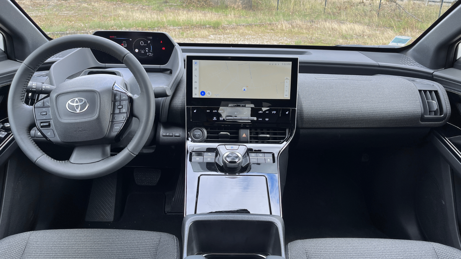 Grâce à sa relative étroitesse (1,86 m de large contre 1,92 m pour un Tesla Model Y), le Toyota bZ4X se révèle très à l’aise en milieu urbain où il offre aussi un excellent niveau de confort et une bonne visibilité. Les grands rétroviseurs compensent l’épaisseur des montants trois quarts arrière, et la caméra de parking avec vue à 360° facilite les manœuvres malgré la faible définition de son écran. Le diamètre de braquage de 11,2 m n’a rien d’exceptionnel, mais se révèle aussi plus favorable que celui d’un Tesla Model Y. Le freinage régénératif peut être accentué et aller jusqu’à l’arrêt en utilisant le bouton « One Pedale ». La puissance de ralentissement demeure cependant limitée et une certaine inertie se ressent au lever de pied. Autre point fort, la garde au sol assez haute (17,7 cm) permet de s’affranchir des trottoirs ou des méchants ralentisseurs que les suspensions absorbent bien. Pour évoluer en tout chemin, le Toyota bZ4X propose un système de motricité renforcée à faible dit XMODE. Les montagnards peuvent aussi opter pour la version 4X4 dotées de deux petits moteurs de 109 ch (soit 218 ch de puissance cumulée) intégrés dans chaque essieu au lieu d’un gros bloc de 204 ch à l’avant.
