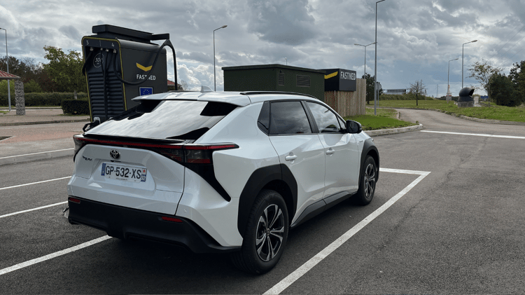 Sur voie rapide, le Toyota bZ4X procure un excellent niveau de confort. De petits sifflements apparaissent à haute vitesse au niveau des rétroviseurs, mais l’insonorisation générale est très satisfaisante. Le système d’aide au maintien de ligne couplé avec le régulateur de vitesse (de série), nous a semblé moins hésitant que sur le Lexus R450E. Preuve que le constructeur fait évoluer rapidement son produit. Notons par ailleurs que le Toyota bZ4X offre une capacité de remorquage de 750 kg. Plus léger et moins puissant que le Lexus RZ450E, le Toyota bZ4X revendique une bien meilleure autonomie selon les normes WLTP (503 contre 404 km). Durant notre essai, nous avons relevé une consommation assez proche en usage mixte (18 kWh/100 km contre 19 kWh) et un peu plus raisonnable sur autoroute à 130 km/h (22 kWh/100 km contre 24 kWh à 130 km/h) mais pas au point de gagner une centaine de kilomètres de rayon d’action. Comptez toujours entre 250 et 350 km selon le type de parcours, ce qui figure dans la bonne moyenne des SUV électrique. Pour la recharge, le Toyota bZ4X peut recevoir 150 kW de puissance maxi en courant continu (DC) et 11 kW en courant alternatif (AC) ce qui figure aussi dans la moyenne du segment.