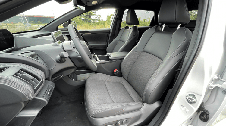 Proposé dans une seule finition dite Origin, le Toyota bZ4X reçoit en série des feux à LED adaptatifs, un becquet arrière, des barres de toit, des vitres arrière teintées et des jantes 18 pouces. À bord, la présentation se fait un peu moins luxueuse que chez Lexus. Le mobilier utilise davantage de plastiques durs, le volant ne possède plus de palettes pour modifier la régénération et les sièges en tissu chauffants ne sont pas ventilés et ne se règle électriquement que du côté conducteur.