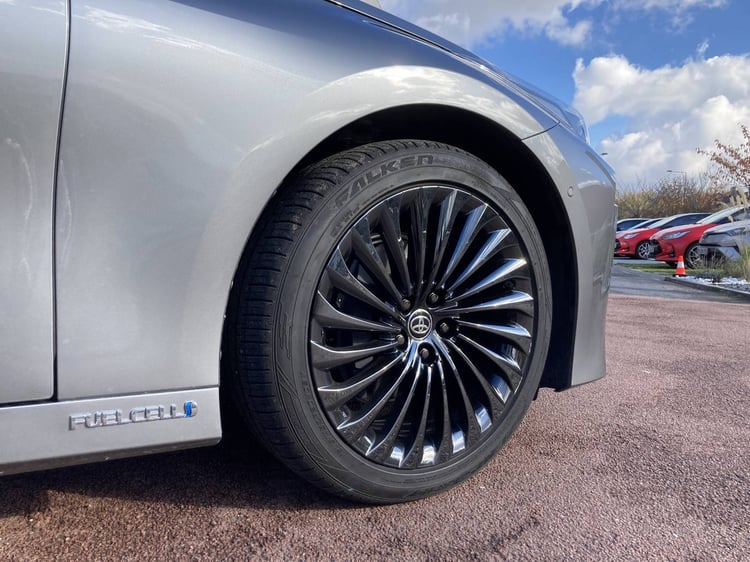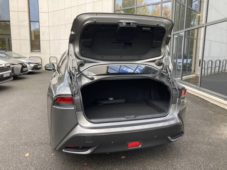 Sa particularité est de recevoir principalement son électricité d’une pile à combustible. Désormais logée sous le capot, celle-ci est plus puissante que celle de la première génération de Mirai (128 vs 114 kW). Elle est alimentée par 3 bonbonnes en carbone qui peuvent contenir au total 5,6 kg d’hydrogène. Ces réservoirs sont respectivement placés sous le coffre, la banquette, et, transversalement, entre les sièges avant.