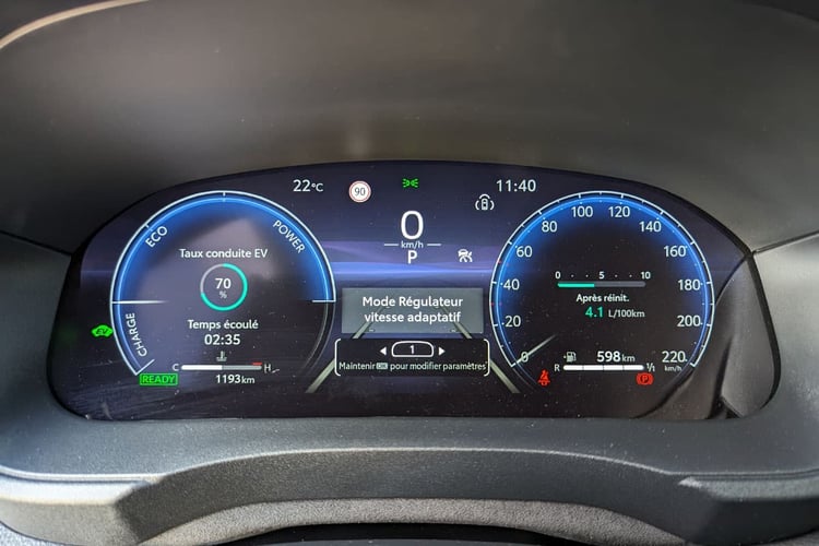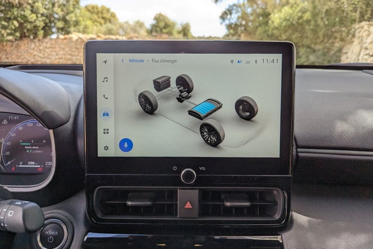 Lorsque l’on joue le jeu de l’éco-conduite et que l’on applique le mode d’emploi de cette motorisation hybride, la transmission à train épicycloïdal se montre sous son meilleur jour : le moteur thermique ne s’emballe pas et sa fluidité se révèle agréable. D’un point de vue technique, il s’agit toujours de l’une des meilleures transmissions dans une auto à nos yeux, hors voitures électriques. Car elle participe, elle aussi, au bilan énergétique avec des déperditions maîtrisées. Ainsi, au terme d’un parcours d’une quinzaine de kilomètres en gardant un œil sur la jauge de puissance retransmise dans l’afficheur tête haute, nous avons réussi à atteindre une moyenne de 2,6 l/100 km ! Une belle performance. Avec le même genre d’exercice dans des conditions similaires, nous avions enregistré un score de 2,8 l/100 km avec une Honda Jazz Crosstar.