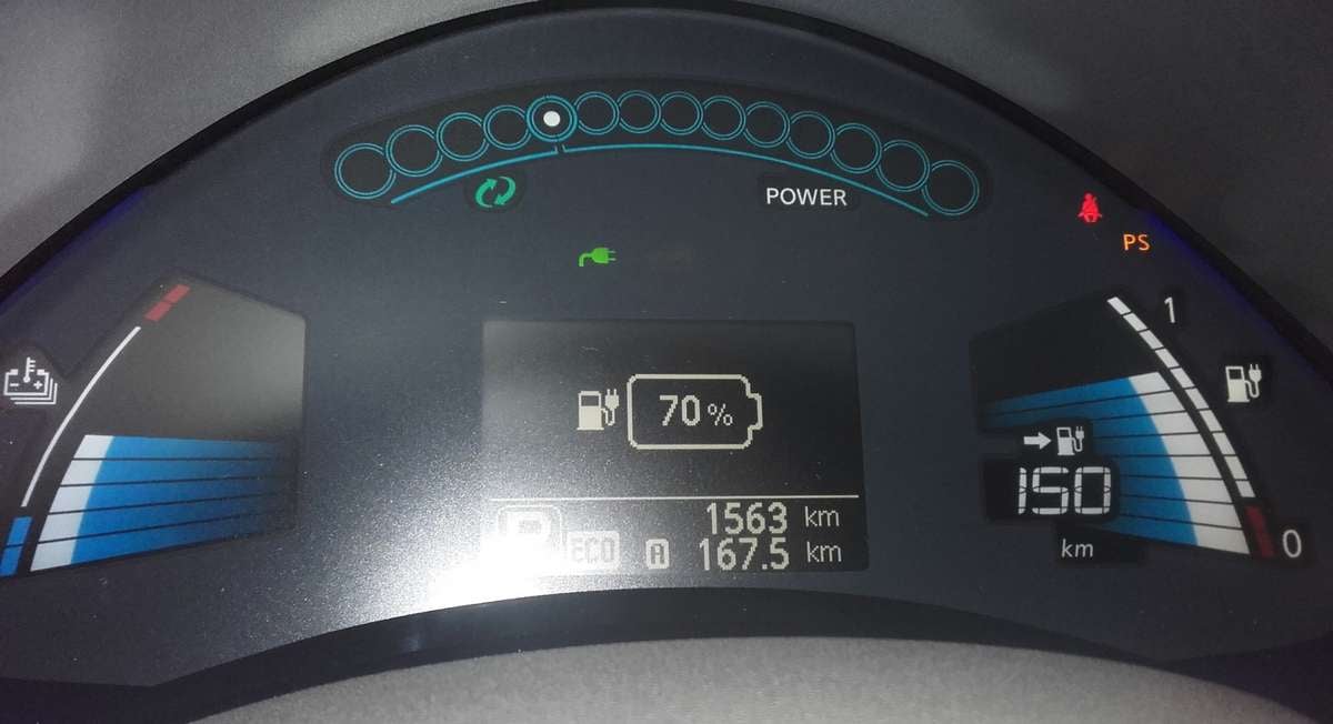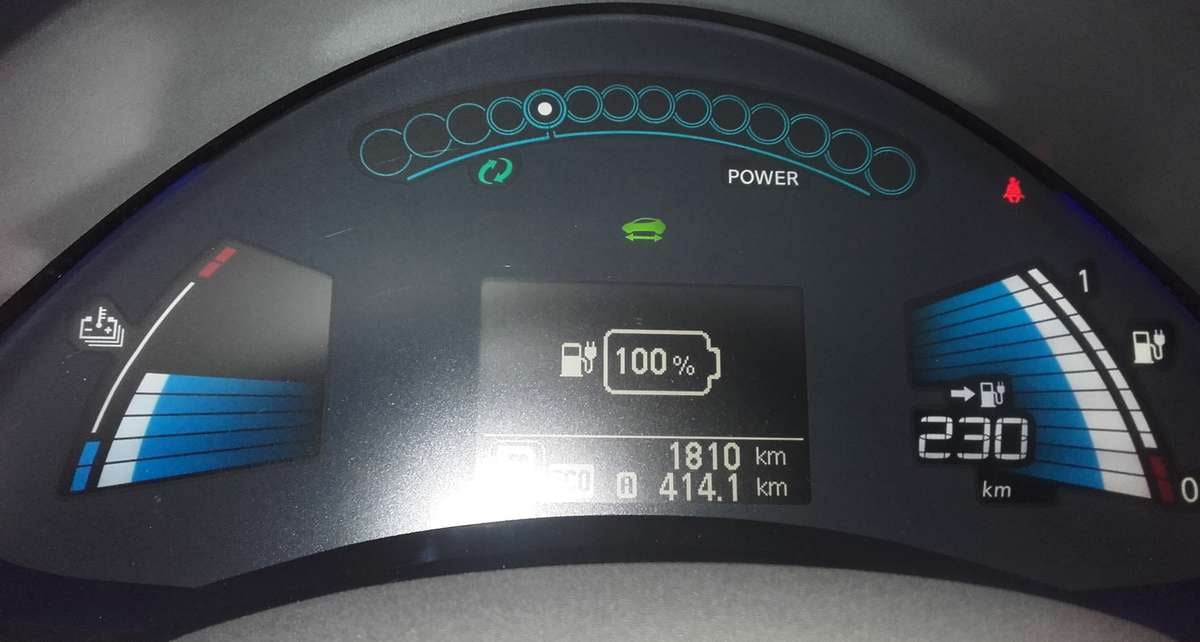 En recoupant les informations fournies par la borne de recharge (quantité d’énergie fournie à la batterie + niveau de charge de la batterie) et celles fournies à l’ordinateur de la voiture, nous sommes arrivés à la conclusion que la capacité utile de la batterie de cette Leaf était vraisemblablement comprise entre 27 et 27,5 kWh.