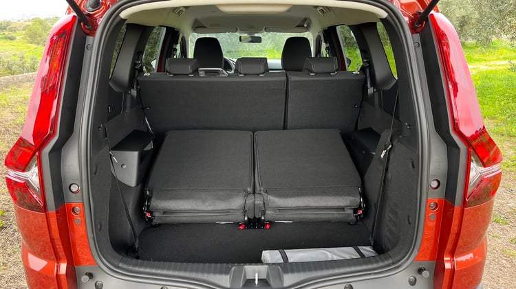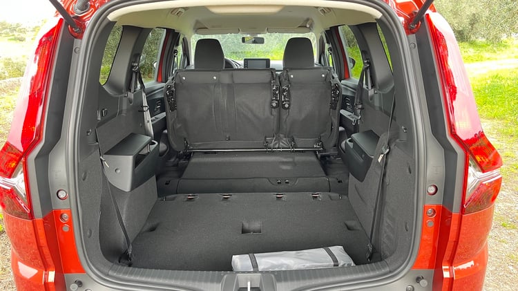 Avec 3 rangées de sièges dans l’habitable, le coffre du Dacia Jogger Hybrid 140 ne peut qu’être d’une grande modularité. Derrière un hayon qui libère un vaste accès, les occupants peuvent compter a minima sur 160 litres. L’espace passe à 565 l en rabattant le rang 3 ou à 696 l en le retirant simplement. Pour comparaison, la version 5 places offre 708 l. Si en plus on rabat la banquette du milieu, le volume est à son maximum dans la familiale avec 1 807 l, contre 1 819 l dans le break classique.