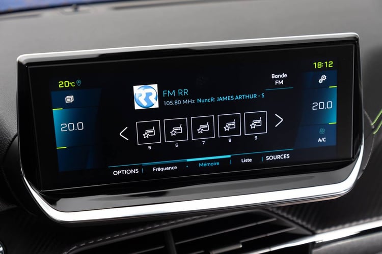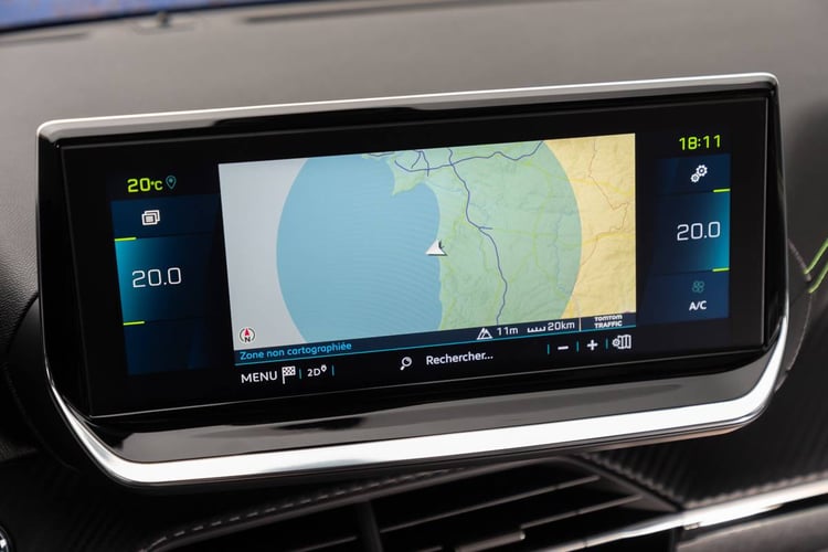 En dehors de son instrumentation déjà très complète, la e-208 intègre un écran tactile. Légèrement orienté vers le conducteur, celui-ci s’étend de 7 à 10 pouces de diagonale selon le niveau de finition choisi. Compatible avec Android Auto et Apple Car Play, il intègre lui aussi des éléments spécifiques à l’électrique tels que l’historique des consommations, la programmation de la charge ou les flux d’énergie.
