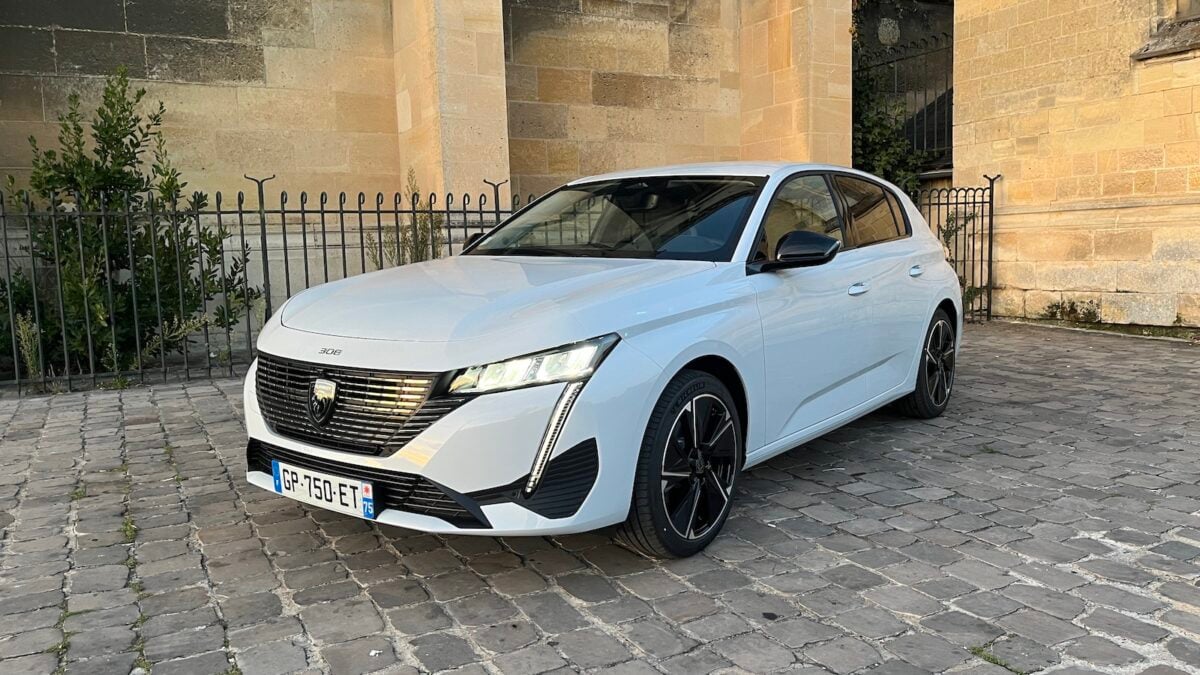 Présentée en mars 2021, la Peugeot 308 était jusqu’à présent disponible avec des motorisations thermiques et hybrides. La voici désormais en version 100% électrique avec un moteur synchrone à aimants permanents de 156 ch situé à l’avant en porte à faux avec le réducteur de couple. Un moteur alimenté par une « petite » batterie (type NMC Nickel Manganèse Cobalt) d’une capacité de 51 kWh de capacité net pour 54 kWh brut. Cette Peugeot e308 conserve son architecture traditionnelle de voiture thermique avec un châssis basique composé de combinés McPherson à l’avant d’un essieu arrière semi-rigide à barre Panhard. Le gabarit reste le même à savoir 4,36 m de long pour 1,85 m de large et 1,48 m de haut ce qui en fait l’une des plus longues berlines compactes du marché. La Renault Mégane électrique mesure 17 cm de moins et même la grande MG4 reste 7 cm plus courte que la Peugeot.