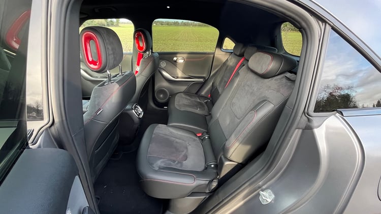 Ou encore, la voiture à notre disposition partage une même largeur avec le Kia Niro EV et s’élève, avec également un grand toit panoramique sur velum escamotable, 5 cm au-dessus du Tesla Model Y. Ce qui autorise à qualifier la Smart #1 de petit SUV compact.