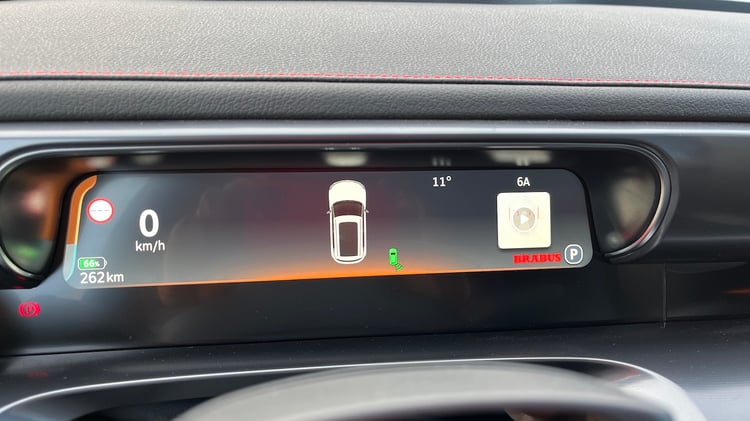 Compatible Apple CarPlay et Android Auto, l’écran tactile 12,8 pouces est un modèle du genre, avec un graphisme soigné et une bonne réactivité. A partir de lui, il est classiquement possible d’intervenir sur les réglages du véhicule. Ainsi pour l’assistance de direction (Light, Medium, Heavy), la puissance de régénération d’énergie (Standard, Strong), et le mode de conduite (Eco, Comfort, Sport, Brabus).