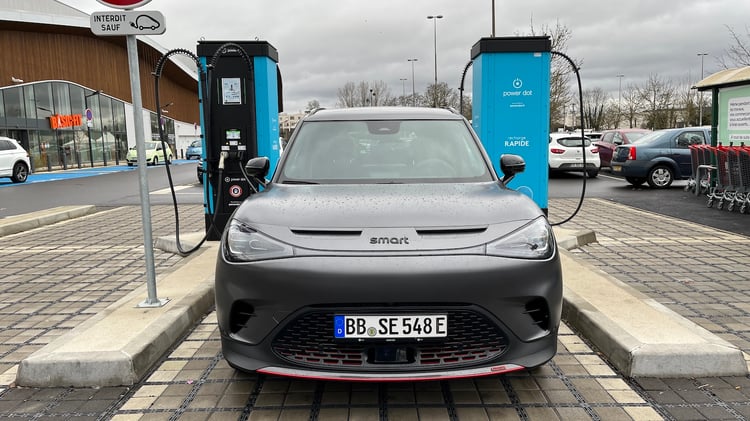 En revanche, on retrouve la même batterie lithium-ion NMC (nickel, manganèse, cobalt) d’une capacité énergétique brute de 66 kWh, pour 62 exploitables. Avec la possibilité de retrouver dans le pack un niveau de 10 à 80 % en moins de 30 minutes grâce à une puissance en courant continu qui pourrait atteindre les 150 kW. Là où Smart fait très fort en la matière, c’est en embarquant un chargeur AC 22 kW, pour exploiter au mieux les nombreuses bornes dressées dans l’espace public. Ce qui reste une rareté sur le marché, en dehors de Renault sur ces Zoé, Megane et Kangoo.