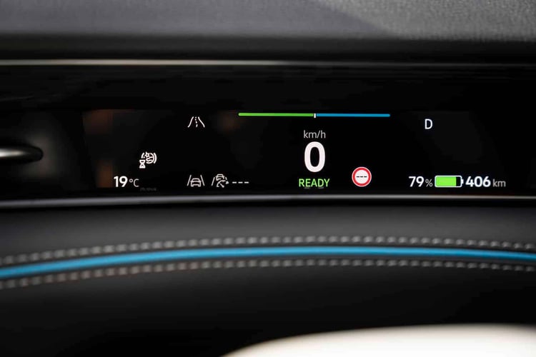 Au milieu du tableau de bord, l’écran 15 pouces est implanté en mode paysage. A sa gauche, le combiné d’instrumentation d’une hauteur réduite qui partage ses informations principales avec l’affichage tête haute.