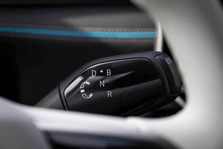 Pour l’animer, il faut aller chercher le sélecteur de marche derrière le volant, et le faire pivoter sur sa tige. Les modes D et B sont à disposition pour avancer. Le second – Brake – renforce le freinage régénératif, sans toutefois permettre l’immobilisation ni être aussi puissant que sur une Tesla. Il faudra donc appuyer sur la pédale des freins pour bien respecter le code de la route en arrivant à un stop ou à un feu rouge.