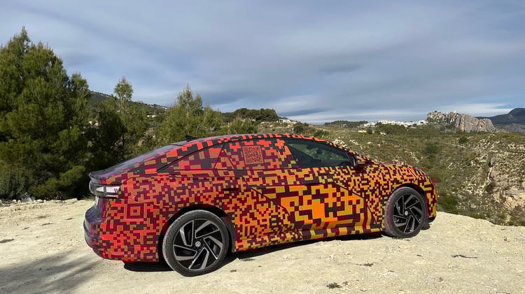 Elle a été révélée au tout début de la présente année 2023 au Consumer Electronics Show (CES) de Las Vegas, avec cette tenue de camouflage façon QR Code qu’elle revêtait encore pour venir rencontrer Maxime Fontanier en Espagne. C’est pourtant de l’usine allemande de Emden, en Basse-Saxe, qu’elle sortira en série pour le marché européen, avec comme compagnie l’ID.4 produite sur place depuis mai 2022.