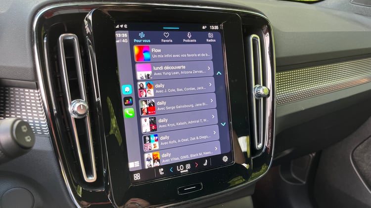 L’infodivertissement est désormais compatible avec Apple CarPlay. Mais il ne sera alors pas possible de connecter en même temps son téléphone en Bluetooth. « Ça évoluera, je pense, sur les prochaines générations. C’est l’avantage des mises à jour à distance », anticipe le représentant d’Automobile Propre.