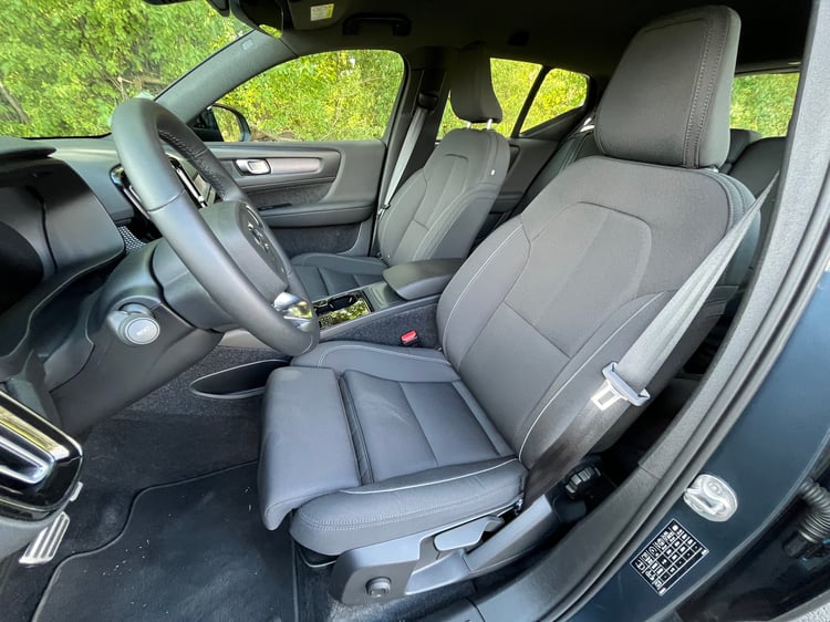 « À l’avant de ce Volvo XC40, la présentation est toujours aussi bien faite, avec une finition soignée », souligne l’essayeur de VE. Des matériaux rembourrés habillent le tableau de bord dans ses parties hautes et basses. Si on ajoute la moquette au niveau des côtés de la console, les genoux ne sont jamais en contact avec des matériaux et/ou des formes désagréables. Les contreportes bénéficient du même traitement.