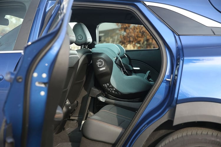 Ramassé, le VinFast VF6 offre tout de même un bon rayon aux genoux pour les passagers arrière. En l’absence de tunnel central, celui assis au milieu ne devra pas faire des acrobaties. En revanche, il faudra être souple pour s’installer à l’avant si un siège enfant posé sur la banquette arrière. Avec notre pack témoin fourni par Thule (base Alfi et siège Elm), le siège passager doit être avancé jusqu’en butée et le dossier un peu redressé. Heureusement, le creux de la boîte à gant et la découpe de la cave aux pieds permettent à un adulte de s’installer. Mais cela ne sera à réserver que pour des courts trajets en ville, alors que les plus de 1,80 m devront monter à l’arrière.