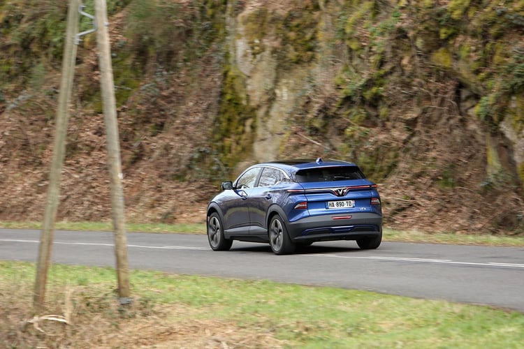Petit volant en main, même si la jante exagérément épaisse façon BMW n’est pas la plus agréable, le VinFast VF6 séduit par sa vivacité. Légère, la direction facilite les manœuvres, bien que le rayon de braquage apparaît assez important pour un SUV de ce gabarit. Les électriques du groupe Volkswagen sur la plateforme MEB font nettement mieux en la matière. Mais la position de conduite assez haute et les différentes caméras de très bonne définition placées tout autour de la voiture permettent de prendre toute la mesure dans les espaces étriqués.