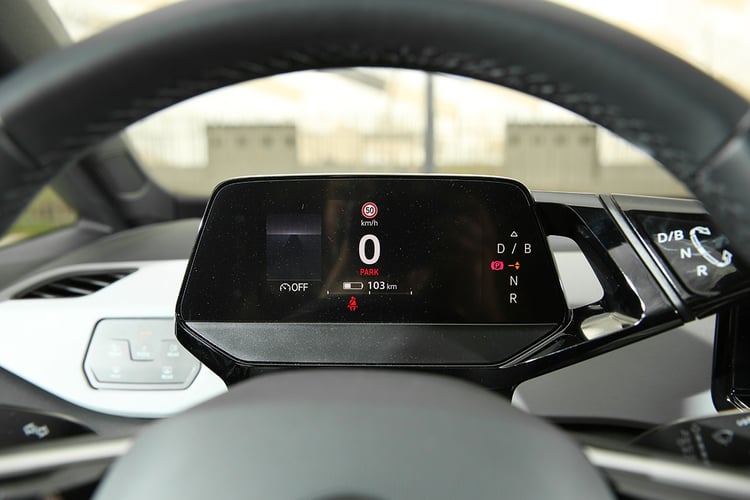 En ville, elle se sent parfaitement à l’aise : direction muette mais légère, rayon de braquage redoutable et assez bonne vision périphérique malgré des montants assez épais… L’ID.3 est plaisante à mener. Reste que son système de freinage régénératif automatique, qui a l’avantage de l’être, se montre bien trop prudent. On en vient donc à préférer le mode par défaut (avec une puissance de régénération assez similaire à celle de la Mégane). Mais pour moduler la puissance sur deux niveaux, il faut faire pivoter le satellite droit proéminent qui ne ferait pas rougir ceux d’une Citroën Axel. Des palettes derrière le volant se révèlent plus pratiques. Comme sa concurrente, aussi, l’ID.3 ne dispose pas d’un système de conduite à une pédale. Dans sa configuration par défaut, nous avons mesuré une moyenne de 19,9 kWh/100 km sur ce terrain.
