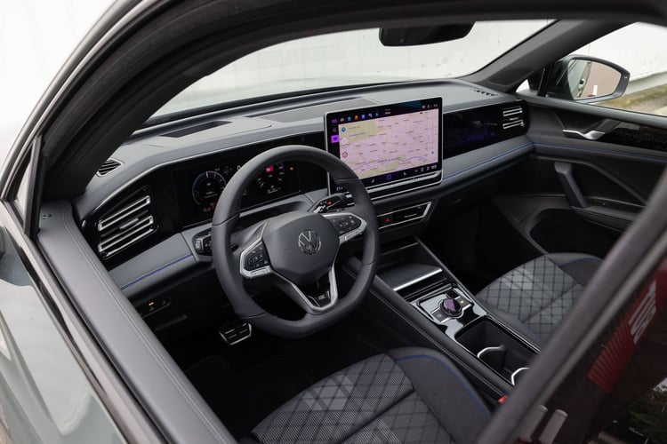 Essai – Honda CR-V e:PHEV : toutes les consommations mesurées de notre SupertestD’une longueur de 4,54 m pour 1,84 m de large, le SUV n’est pas plus imposant qu’un Kia Sportage, contrairement à ce que ses larges panneaux de carrosserie laissent supposer. Une impression renforcée avec la finition R-Line, qui s’accompagne d’une gueule béante qui pourrait le faire passer pour un Touareg aux yeux des non avertis. À bord, l’ambiance est radicalement différente de la précédente mouture, avec une présentation beaucoup plus technologique. Le Tiguan s’équipe dès l’entrée de gamme d’une instrumentation numérique de 10 pouces et d’un écran tactile central de 12,9 pouces. En version R-Line Exclusive haut de gamme, la diagonale grimpe à 15 pouces. Ceux qui passeraient d’un Volkswagen ID.4 au Tiguan ne seraient pas dépaysés, exception faite de la molette centrale qui permet de commander le volume audio, les modes de conduite ou l’éclairage d’ambiance… et de véritables touches physiques sur le volant ou pour ouvrir les fenêtres !