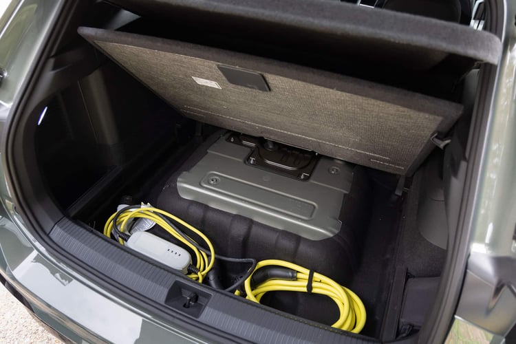 À l’arrière, l’habitabilité a tout de confortable avec des assises bien dessinées et un bel espace aux genoux. La banquette, toujours coulissante, ainsi que les dossiers inclinables, permettent de moduler le volume du coffre, annoncé à un maximum de 490 l en version eHybrid. Avec cette plateforme, si le volume utile au dessus du plancher ne bouge pas, l’espace inférieur perd en capacité avec l’apparition du réservoir (qui passe de 55 à 45 l).