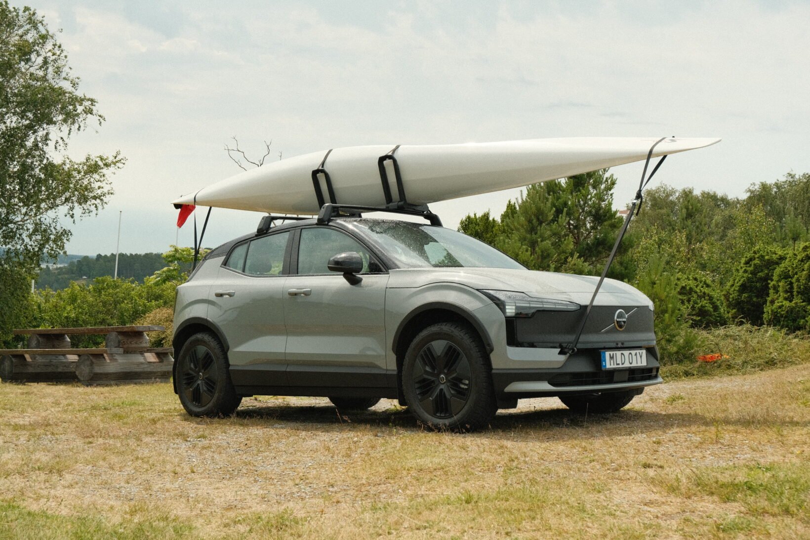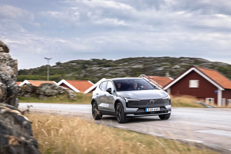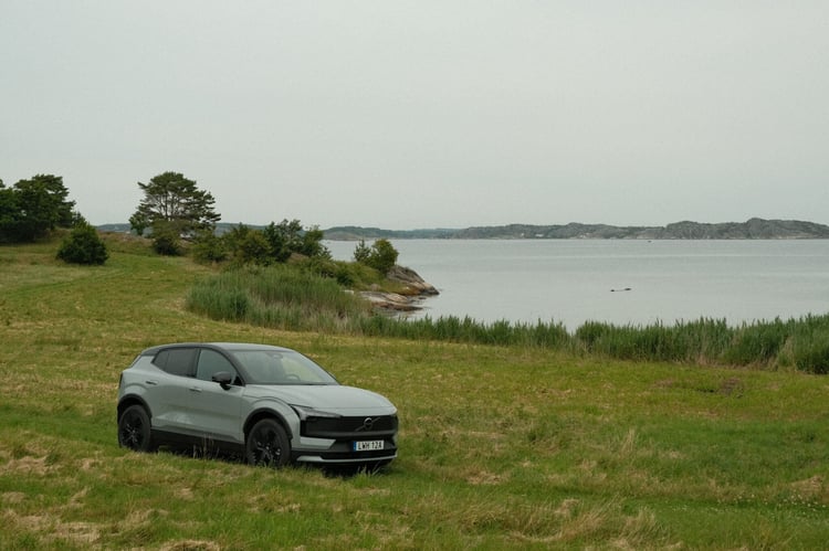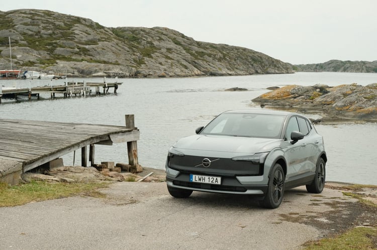 Quoi de mieux que les fjords de la côte ouest suédoise pour mettre à l’épreuve cette petite boule de nerfs ? Parce que oui, en plus d’avoir été transformé pour l’aventure, l’EX30 Cross Country bénéficie de performances assez impressionnantes. Cette version profite d’office de la finition Ultra avec la motorisation Twin Performance pour une puissance cumulée de 428 ch, un couple de 543 Nm et un 0 à 100 km/h en 3,7 secondes. Sur un véhicule qui ne pèse « que » 1 960 kg, ça fait son petit effet.