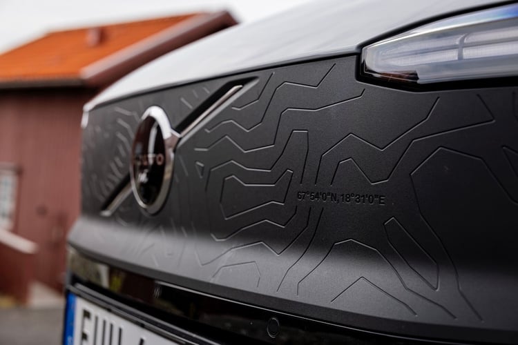 Cette mouture aventureuse de l’EX30 se distingue par ailleurs par son design extérieur. Vous avez probablement remarqué les boucliers avant et arrière noir mat. Pour faire transpirer un peu plus l’esprit baroudeur du petit SUV électrique, les designers ont poussé le vice jusqu’à graver des lignes inspirées des cartes topographiques de la chaîne de montagnes Kebnekaise à Abisko sur ces fameux boucliers. C’est un petit détail qui peut sembler anodin à première vue, mais qui apporte tout de même quelque chose en plus.
