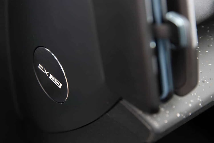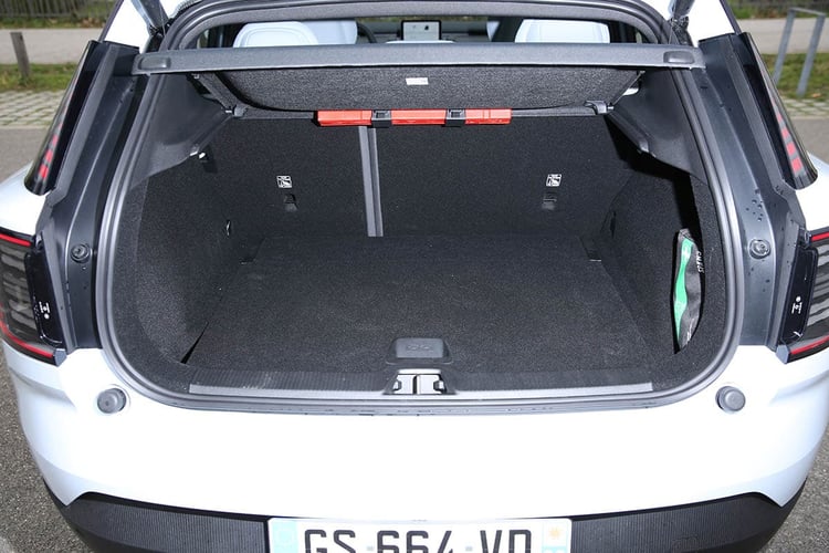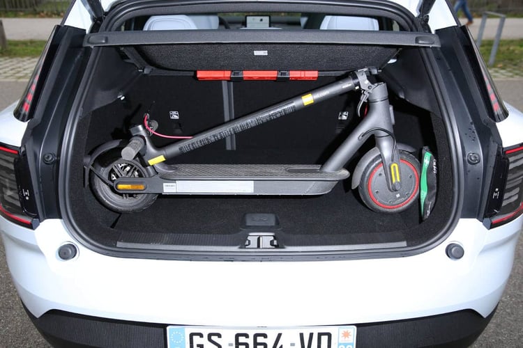 Mais le Volvo EX30 se rattrape toutefois en matière de présentation et d’habitabilité, avec une belle impression d’espace à l’avant et plusieurs rangements malins. Dommage, il aurait été intéressant de profiter de l’absence d’instrumentation derrière le volant pour y loger une boîte ou un vide poche. A l’arrière, on y est un peu plus à l’étroit, mais la place est assez confortable pour la catégorie. Le coffre de 318 l, sous-plancher de 61 l compris, n’est pas exceptionnel. Un Jeep Avenger d’une tête de moins propose 355 l, tout comme une MG 4 et ses 350 l. Pour le fun, Volvo a gravé dans les habillages du coffre une notice sur les objets qui peuvent être emportés. Reste qu’il s’est montré à la hauteur pour embarquer notre trottinette témoin, qui passe très facilement en largeur (les creux derrière les passages de roues aidant), mais pas en hauteur : il faut alors faire sauter la plage arrière ou la coucher. Bref, ça passe, mais rien de révolutionnaire.