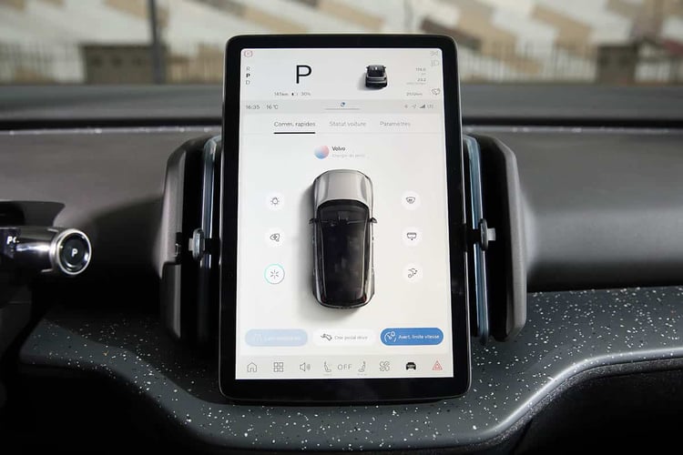 Avec une température extérieure de 14 °C, le Volvo EX30 a présenté une moyenne finale de 17,1 kWh/100 km sur notre parcours mixte mêlant routes secondaires, voies rapides et parcours en hyper-centre. En matière d’appétit, il se place au même niveau qu’une Renault Megane e-Tech ou qu’une MG 4 Luxury. C’est dans la moyenne du segment, sans plus. Mais la capacité à peine supérieure lui permet de gagner 20 km de plus en matière d’autonomie totale théorique. Dans l’absolu, c’est correct.