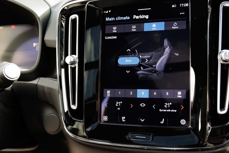 Pas de grand changement à bord non plus. En bonnes autos modernes, XC40 et C40 orientent leur habitacle autour d’une grande tablette verticale. Rappelons que Volvo a précédé Renault dans l’adoption d’un système Android Automotive de Google, pour gouverner le combiné d’instrumentation numérique et l’écran central. Si cela gagne en clarté, le combiné d’instrumentation est presque trop simpliste et bien peu personnalisable. On regrette aussi l’ergonomie imparfaite de l’écran central avec ces « menus à tiroirs ». Encore faut-il trouver le bon sous-menu du paramètre que l’on cherche !