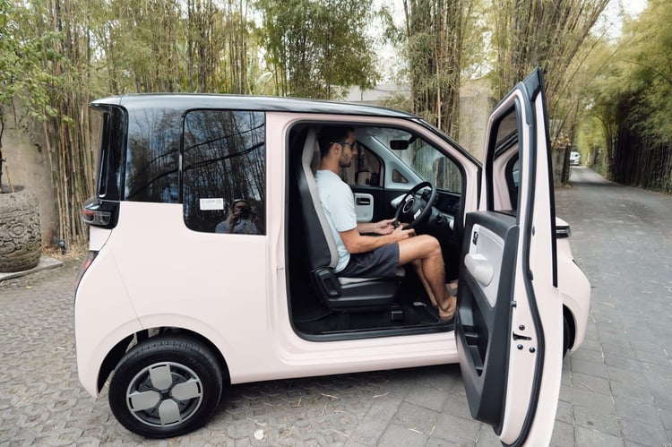 Daihatsu dévoile le Vizion-F, un fourgon 100 % électrique imaginé pour l’IndonésieEt c’est là que Wuling entre en jeu. Le constructeur chinois a quasiment le monopole sur l’électrique. Avec ses trois modèles phares, les Air EV, Binguo EV et Cloud EV, le constructeur semble séduire de plus en plus de Balinais. Nous avons eu l’occasion de tester la plus petite pendant quelques heures afin de comprendre pourquoi les locaux se laissent séduire. Premier argument : le prix. La Wuling Air EV est proposée à partir de 190 millions de roupies indonésiennes (11 000 euros).