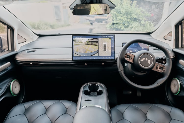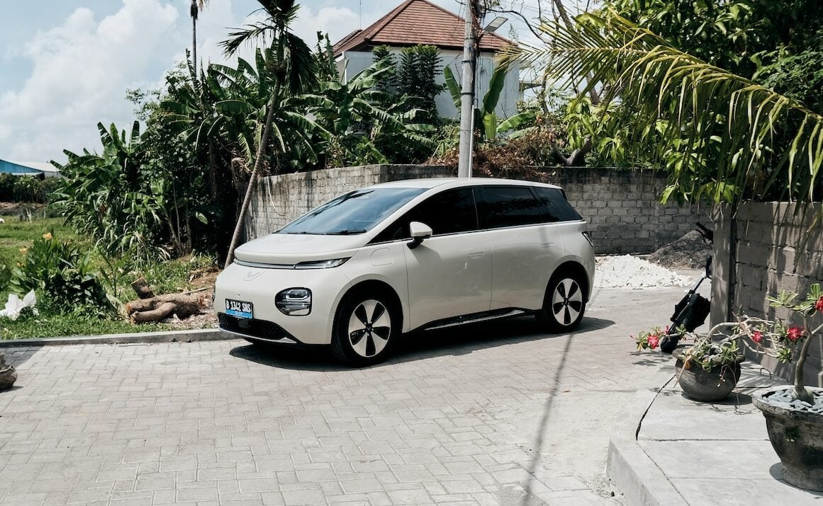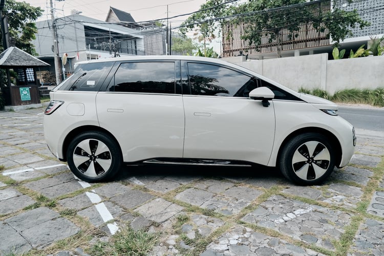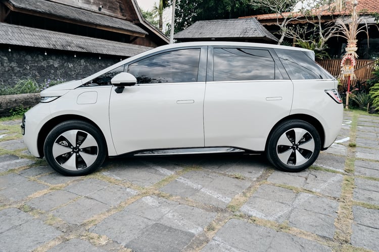 Ce n’est pas tout : la voiture électrique est dotée d’un hayon électrique et de plusieurs caméras à l’avant, à l’arrière et sur les côtés. De quoi faciliter les manœuvres et ajuster son positionnement dans le trafic très dense de Bali. Les roues sont montées sur des jantes de 18 pouces et le choix avec 4 couleurs différentes : Pristine White (blanc), Maltese Blue (bleu), Milk Tea (crème) et Starry Black (noir).