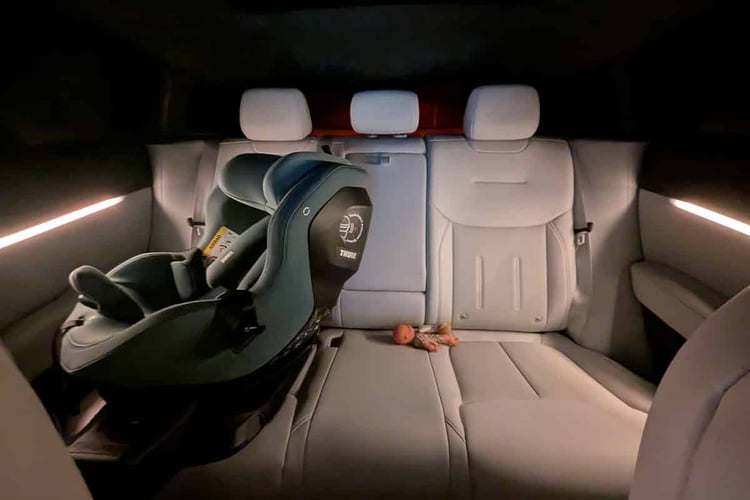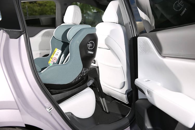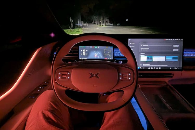 Avec une longueur de 4,75 m, le XPeng G6 offre bien entendu toute la place nécessaire à la famille à bord. À l’avant, les adultes profitent de sièges plutôt confortables, chauffants, ventilés et massants, et avec suffisamment d’amplitude dans les réglages. Même chose à l’arrière avec la banquette inclinable grâce à des tirettes derrière les portes. À ce sujet, l’angle d’ouverture est basique mais la hauteur de l’encadrement facilite l’installation des enfants. Côté pratique, il ne révolutionne pas le genre. La traditionnelle boîte à gant à l’avant est remplacée par le profond bac central. À l’arrière, on y retrouve des vide-poches et des aumônières basiques.