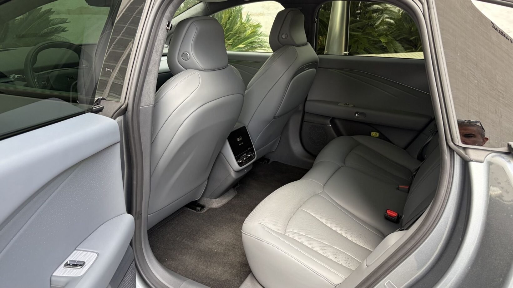 À l’arrière, justement, la Xpeng P7+ se la joue limousine en choyant les passagers. Ces derniers disposent d’un espace généreux pour les jambes qu’on pourra aisément étendre. Dommage que l’implantation très basse des sièges avant empêche de glisser les pieds en dessous. Contrairement aux Tesla récentes, l’écran dédié aux places arrière se limite au réglage de la climatisation et des sièges, ainsi qu’à la radio. Pas de Netflix ni de Youtube pour le moment, mais une mise à jour OTA (Over The Air) pourrait très bien les ajouter par la suite. En revanche la partie audio se la joue studio sur roues avec pas moins de 20 haut-parleurs, dont deux dans l’appui-tête conducteur.
