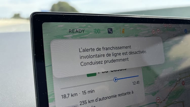 En activant la conduite semi-autonome qui s’est avérée très agréable et vraiment efficace sur les deux jours de notre essai, la voiture peut automatiquement changer de file en activant le clignotant sans même toucher le volant. C’est dans ces moments-là que Xpeng montre à quel point elle maîtrise le logiciel. Une maîtrise qui n’est cependant pas sans faille, en témoignent les aides à la conduite qui sont beaucoup trop invasives par moment. Outre les nombreuses notifications sonores et visuelles, certaines se réactivaient sous nos yeux si nous avions désactivé l’aide au maintien dans la file, notamment. Les corrections automatiques de cap sont parfois violentes entre coups de volant et points durs dans la direction. Xpeng se veut néanmoins rassurant, une voiture construite autour du logiciel acceptant forcément des mises à jour qui viendront corriger ce comportement de la P7+.