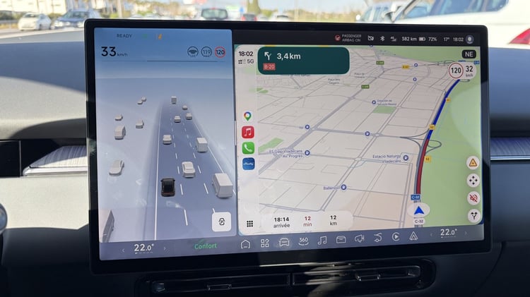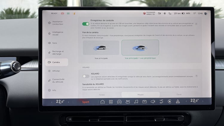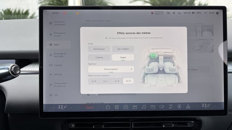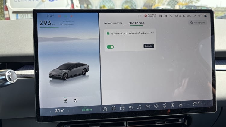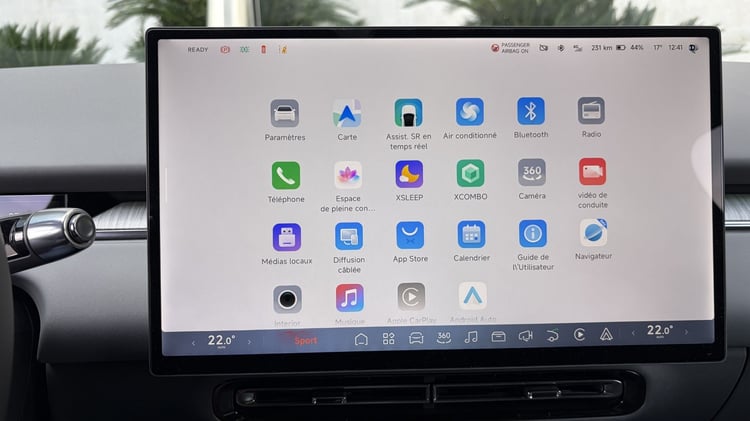 L’écran d’infodivertissement n’est pas en reste avec une interface graphique très réussie et dont l’organisation n’est pas sans rappeler celle de Tesla : les différentes rubriques sont regroupées dans la colonne de gauche quand les raccourcis les plus utiles prennent place sur le bandeau inférieur. Mieux, ce dernier est personnalisable grâce à un appui long. Vous avez souvent besoin d’ouvrir la boite à gants ? Plus besoin d’aller fouiller dans le menu en ajoutant un raccourci direct, ce qui est très bien vu pour faire passer la pilule du tout écran.