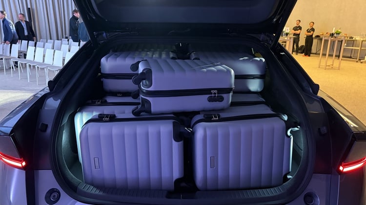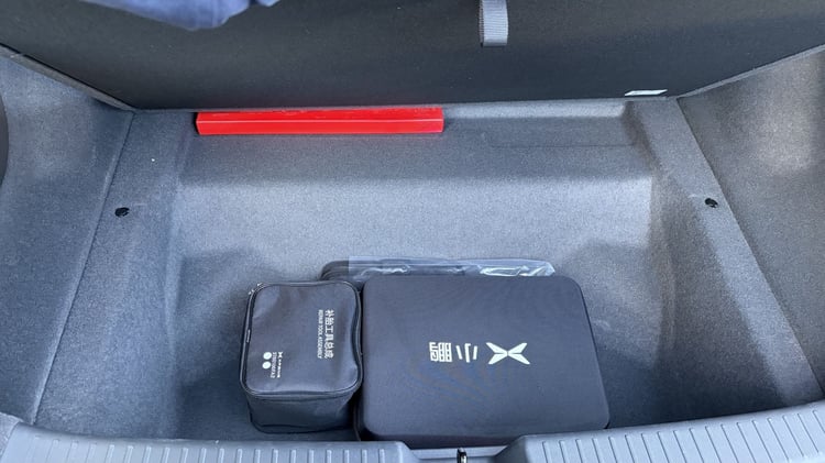 À plus de cinq mètres de long, la Xpeng P7+ promet une capacité d’emport record. Lors de la présentation, le constructeur a carrément rangé 33 bagages cabines à l’arrière en rabattant la banquette 2/3-1/3. Au quotidien, les choses risquent tout de même d’être un peu plus compliquées. En effet, s’il est profond et qu’il affiche 573 litres (1 931 litres en rabattant les sièges), l’espace de rangement du coffre est limité en hauteur par la ligne de toit plongeante. Mieux vaut donc éviter les grosses valises. Un espace supplémentaire est disponible sous le plancher pour accueillir les câbles de recharge ou un bagage cabine. Parmi les absents, on notera l’absence du moindre cache-bagages et d’un frunk sous le capot avant.