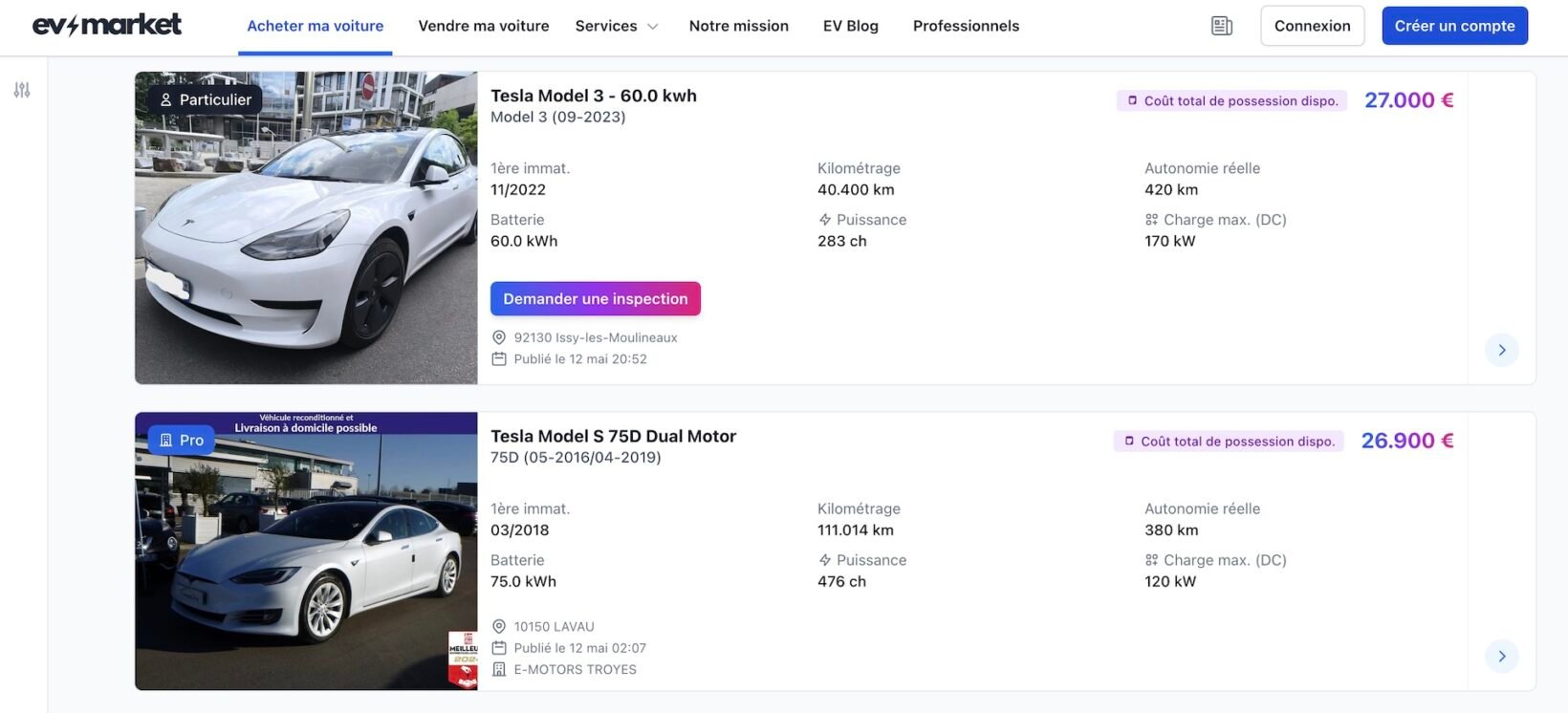 Voitures électriques d’occasion : la baisse des prix se confirme en ce début d’année 2025Une situation qui s’explique par les spécificités techniques : autonomie, état de la batterie, temps de recharge, etc. Autant de critères souvent absents des annonces sur les sites traditionnels. Face à ce constat, Florent Angles a décidé de créer une plateforme spécialisée. Contrairement aux sites d’annonces traditionnels, EV Market se concentre exclusivement sur les véhicules électriques d’occasion.