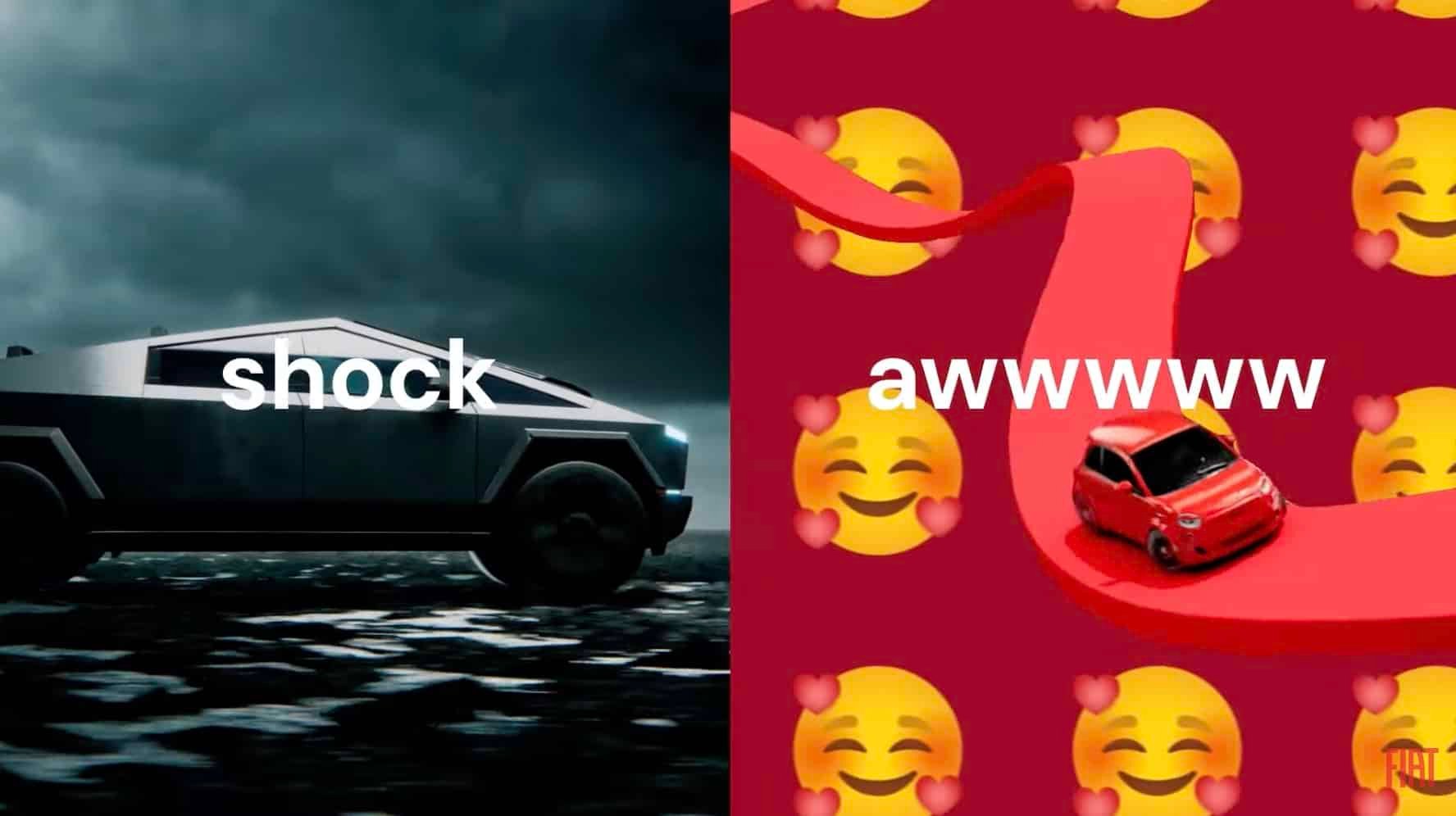 Il y a aussi quelques jeux de mots étranges. Fiat affirme que le Cybertruck a été « inspiré par les angles », tandis que la 500 électrique a été « inspirée par les anges ». Les deux véhicules n’ont évidemment rien à voir, mais le constructeur essaye de montrer le caractère « exceptionnel » de sa petite voiture électrique. Pas sûr que cela change quoi que ce soit auprès des Américains.