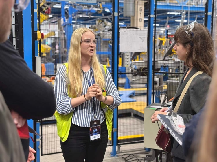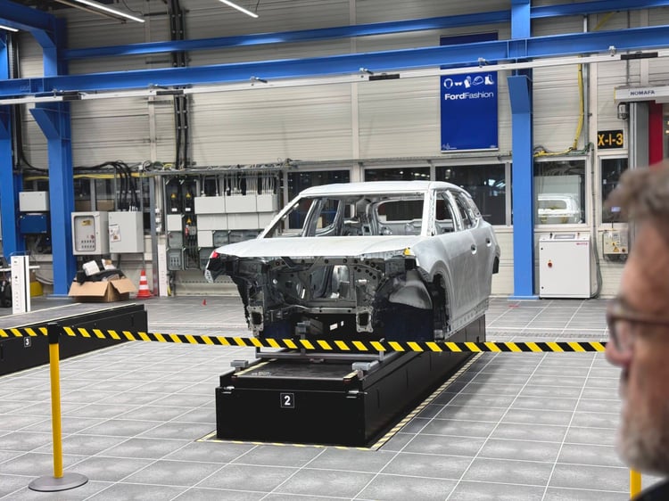 À quelques minutes du centre-ville de Cologne, se trouve le Ford Cologne Electric Vehicle Center (CEVC). C’est ici qu’est produit le nouveau véhicule 100 % électrique américain, là où la Fiesta était encore fabriquée il y a quelques mois. La firme a décidé de mettre fin à sa petite voiture emblématique. À Cologne, dans la configuration actuelle, 250 000 voitures électriques sont censées voir le jour chaque année. Soit un modèle toutes les 54 sec.