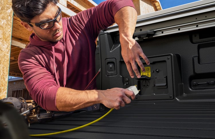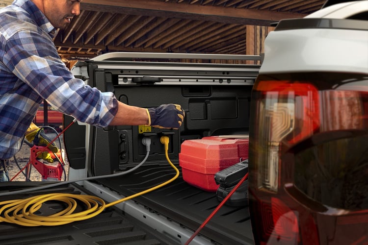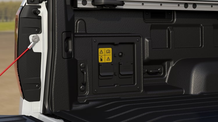 Le modèle hybride est doté du Pro Power Onboard, qui permet de brancher des outils ou appareils électriques à des prises logées dans la benne. Pratique donc pour les pros qui peuvent ainsi se passer d’un générateur bruyant et encombrant. Si la batterie se vide trop, le bloc essence peut faire office de générateur. Il y a aussi une prise dans l’habitacle.