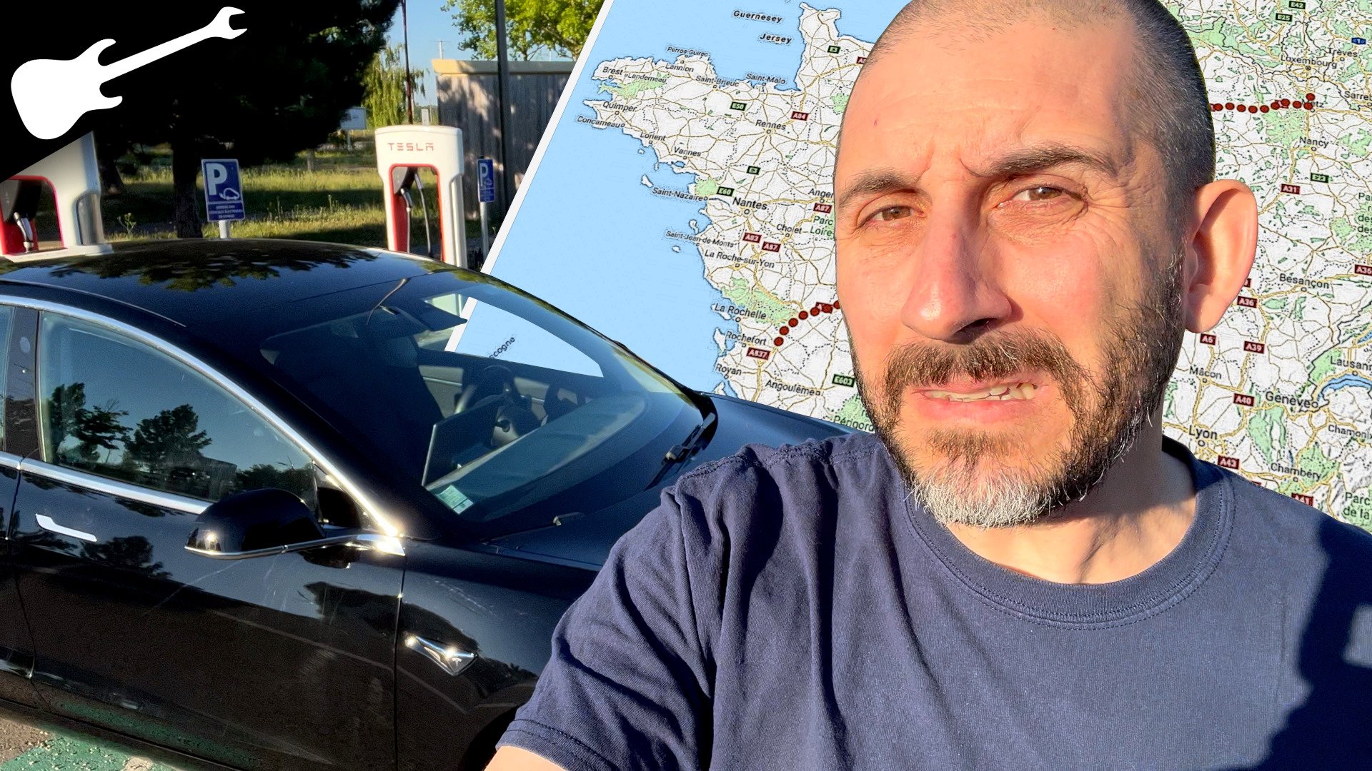 J’ai donc filmé le trajet de notre départ en vacances en famille en Tesla Model 3 Long Range (spoiler : ça ne nous a pas pris trois jours pour faire les 900 bornes). La voiture était chargée au maximum dans les deux sens du terme : la batterie, les coffres et l’habitacle étaient pleins ! On y voit que l’autonomie affichée est complètement utopique quand on roule à 130 sur l’autoroute : c’est quelque chose que l’on sait et cela n’empêche pas de faire des longs voyages. Comme c’est une Tesla, le GPS planifie automatiquement les arrêts-recharge et le maillage toujours plus dense du réseau de Superchargeurs rend l’expérience de la recharge facile, rapide et agréable.
