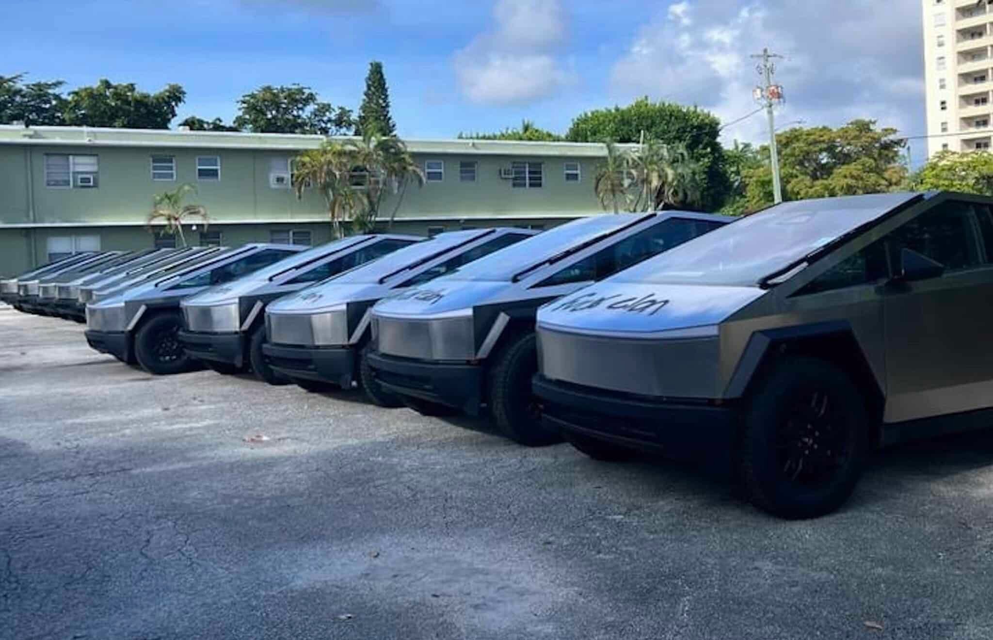 Comme Tesla a brièvement interrompu les livraisons du Cybertruck en raison d’un problème lié au moteur de l’essuie-glace, des modèles se sont entassés un peu partout aux États-Unis. Plusieurs vidéos ont circulé sur les réseaux sociaux au cours des derniers jours. Mais celle publiée par OnlyinDade était différente. Cette fois-ci il y avait bien des pick-up électriques garés sur un parking, mais avec une inscription particulière.
