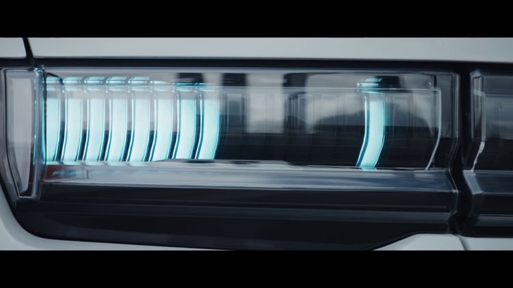 Spectaculaire, le GMC Hummer EV l’est, mais ne donne pas ses dimensions exactes. On estime la longueur à près de 6 mètres pour 2,10 mètres de large et 2 mètres de haut. Il soigne cependant son apparence avec ses phares dynamiques affichant aussi le niveau de batterie. Ils font corps avec la calandre, aussi lumineuse en exposant le nom HUMMER, alors que le logo GMC est à peine visible dans le bouclier avant. Dans l’habitacle 4 places, tout respire le solide. Même les écrans semblent être des tablettes taillées pour affronter une expédition désertique.