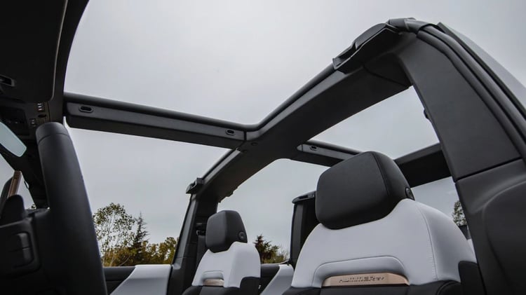Nous n’avons pas la taille des batteries « Ultium » de nouvelle génération que propose le duo GM-LG Chem, ayant évoqué jusqu’à 200 kWh. On se contente des seules valeurs d’autonomie : 563 km au maximum, 482 km en EV2X et EV3X, ou 400 km pour l’entrée de gamme. Seule l’Edition 1 devrait proposer la recharge à 350 kW, promettant la récupération de 160 km en seulement 10 minutes. C’est également ce véhicule que vous voyez en images avec son toit à panneaux amovibles.