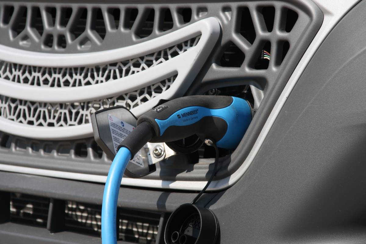 Le connecteur type 2 se voit à peine en bas à droite de la calandre quand on regarde l’utilitaire de face. Pas plus de 2 à 3 heures de raccordement lui sont nécessaires pour retrouver son autonomie maximale. L’opération est également possible en 16 A. Comptez de 12 à 20 heures d’immobilisation dans ce cas. Les charges partielles sont, bien entendu, toujours possibles, voire même conseillées.