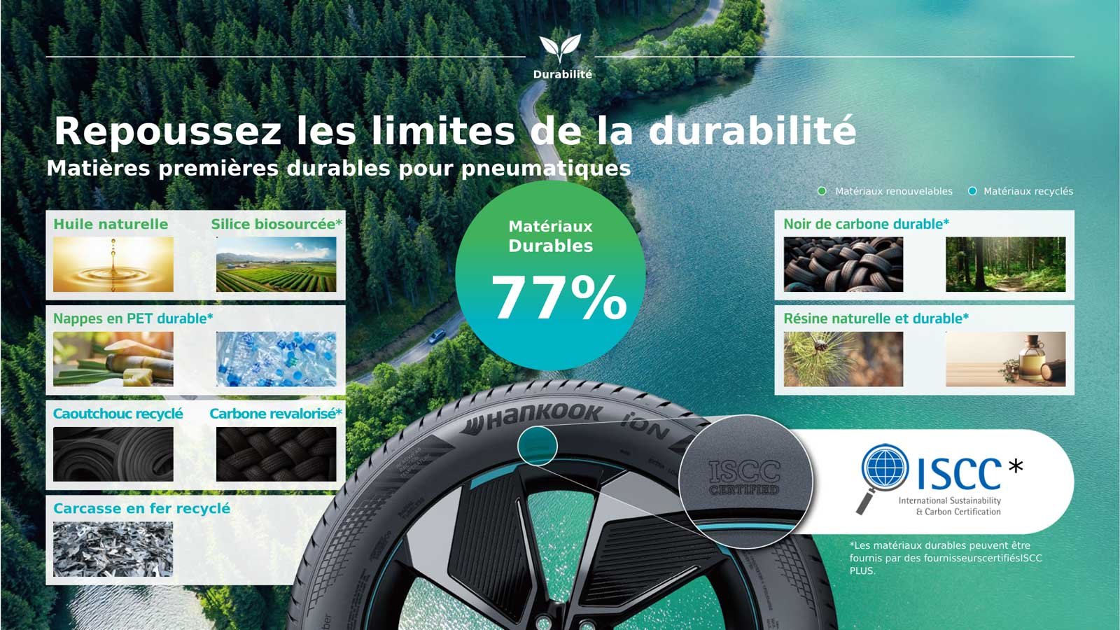 Avec ses 77 % de matériaux durables, le nouveau Hankook iON GT est le pneumatique à la conception la plus respectueuse de l’environnement