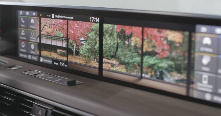 S’étalant de part et d’autre du tableau de bord, cinq écrans composent l’ambiance numérique de cette Honda e. Alors que les deux écrans situés à chaque extrémité restituent les images filmées par les rétro-caméras remplaçant les classiques rétroviseurs, trois autres écrans permettent de suivre l’ensemble des fonctionnalités de la voiture. Le premier sert d’instrumentation numérique tandis que les deux autres regroupent le système d’info-divertissement. Tactiles, ces deux écrans principaux s’étendent chacun sur 12,3 pouces de diagonale. Compatible avec les systèmes Apple Car Play et Android Auto, ils offrent un éventail d’applications et de services avec un fonctionnement annoncé comme proche de celui d’un smartphone.