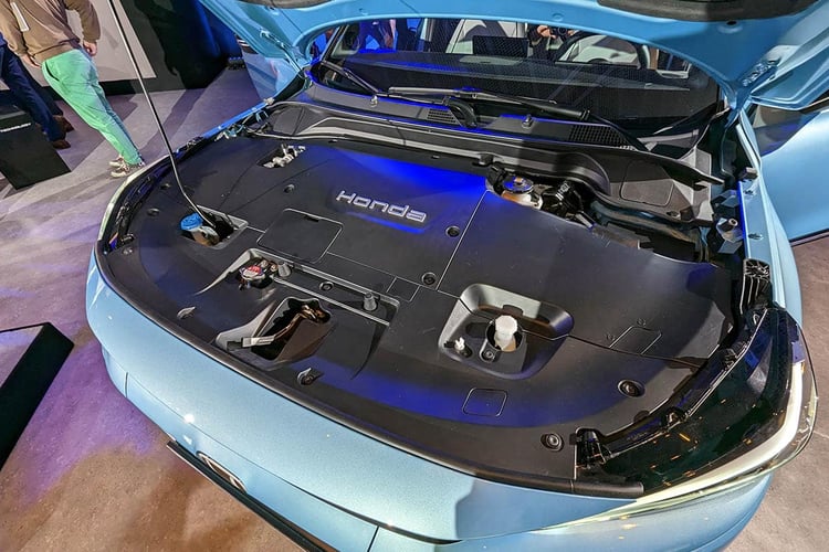 Malgré sa ressemblance frappante avec le HR-V, le Honda e:Ny1 repose sur la plateforme Honda e:N Architecture F, qui diffère nettement de la Honda Global Small Car du SUV hybride, aussi partagée avec la Jazz. Elle embarque une chaîne de traction inédite avec une machine électrique installée à l’avant et alimentée par une batterie logée sous le plancher. Le moteur peut déployer au maximum 204 ch (150 kW) pour 310 Nm de couple. Le poids homologué de ce côté du globe n’a pas été communiqué, mais un rapide tour sur le site Honda en Chine nous permet d’anticiper une masse de 1 680 kg.