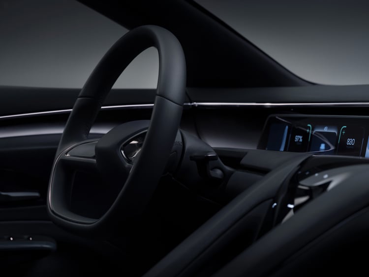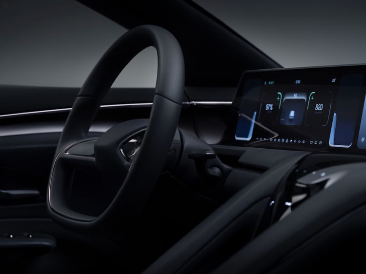 Cet habitacle a été conçu par le designer Félix Godard, qui a œuvré chez Porsche, Tesla ou encore Lucid. Des marques dont on retrouve l’influence dans le dessin de la planche de bord. Pièce maîtresse, un grand écran qui occupe toute la largeur, étant ainsi accessible au conducteur et au passager. Il peut être mis en retrait pour se faire plus discret et l’affichage est bien sûr personnalisable.