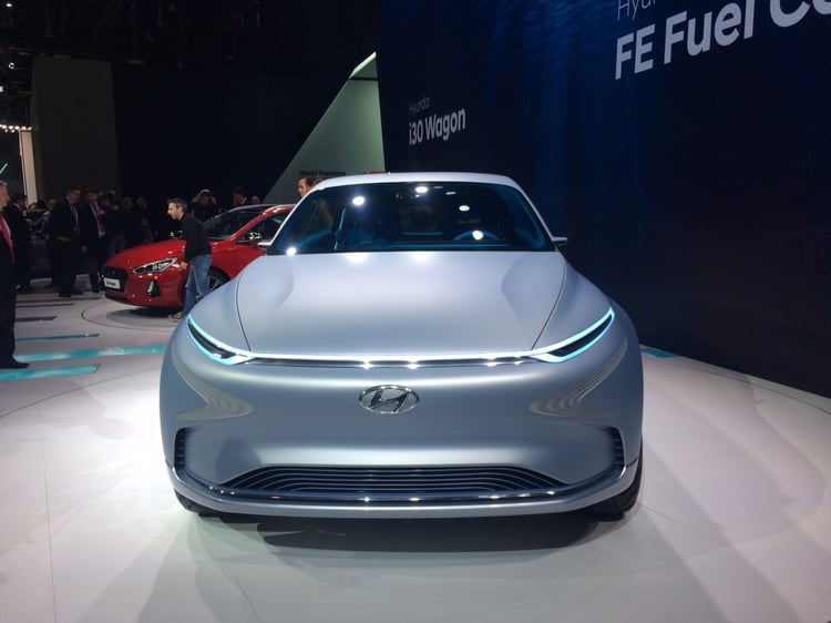 Avec le concept-car FE Fuel Cell, Hyundai veut montrer qu’il continue à croire dans les véhicules à pile à combustible hydrogène et qu’il s’agit d’un axe stratégique majeur pour le constructeur.
