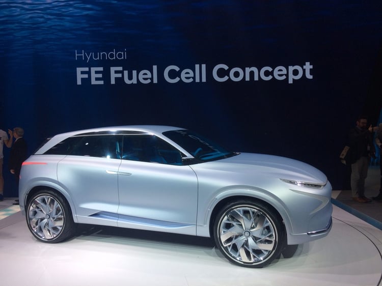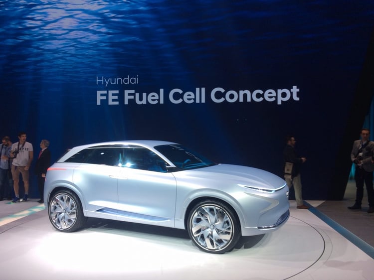 Depuis près de 20 ans, Hyundai travaille sur les voitures à pile à combustible hydrogène. Un engament qui s’est traduit par le lancement du ix35 en 2013, le premier véhicule hydrogène produit « en masse » et en vente dans 17 pays dans le monde.